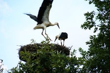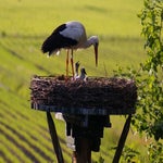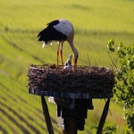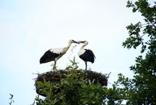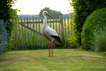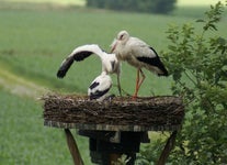 In onze achtertuin hebben we in 2010 een ooievaarspaal neergezet. In 2011 hadden we al een ooievaarspaartje met een eerste nest jongen. Sindsdien hebben we nog ieder jaar een paartje broedende ooievaars op het nest gehad. Het is ieder jaar weer een hele belevenis om deze prachtige vogels, die bijna waren uitgestorven in Nederland, van zo dichtbij te kunnen meemaken. En onze gasten genieten er ook heel erg van.